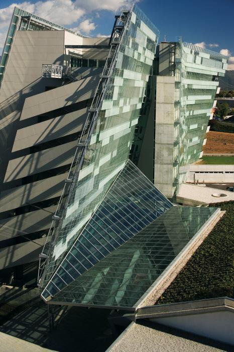 Located at the northern edge of Udine, in the town of Tavagnacco, the new headquarters for Hypo-Alpe-Adria Italy has developed as a dynamic and nuanced response to program and site. In this dialectical relationship between the specific architectural language of the project and the local landscape, each element informs, transforms, and adjusts the total composition. The result is a richly developed series of spaces and building elements. Following the dictates of the program, the site is configured as an interwoven series of building components. Each of these individual parts is carefully organized around an elongated driveway, knitting together the disparate corners of the site. The overall effect is a wholly new precinct for Tavagnacco -- one that fulfills the functional and symbolic requirements of the Hypo bank while serving the nearby neighborhood with a series of public amenities.